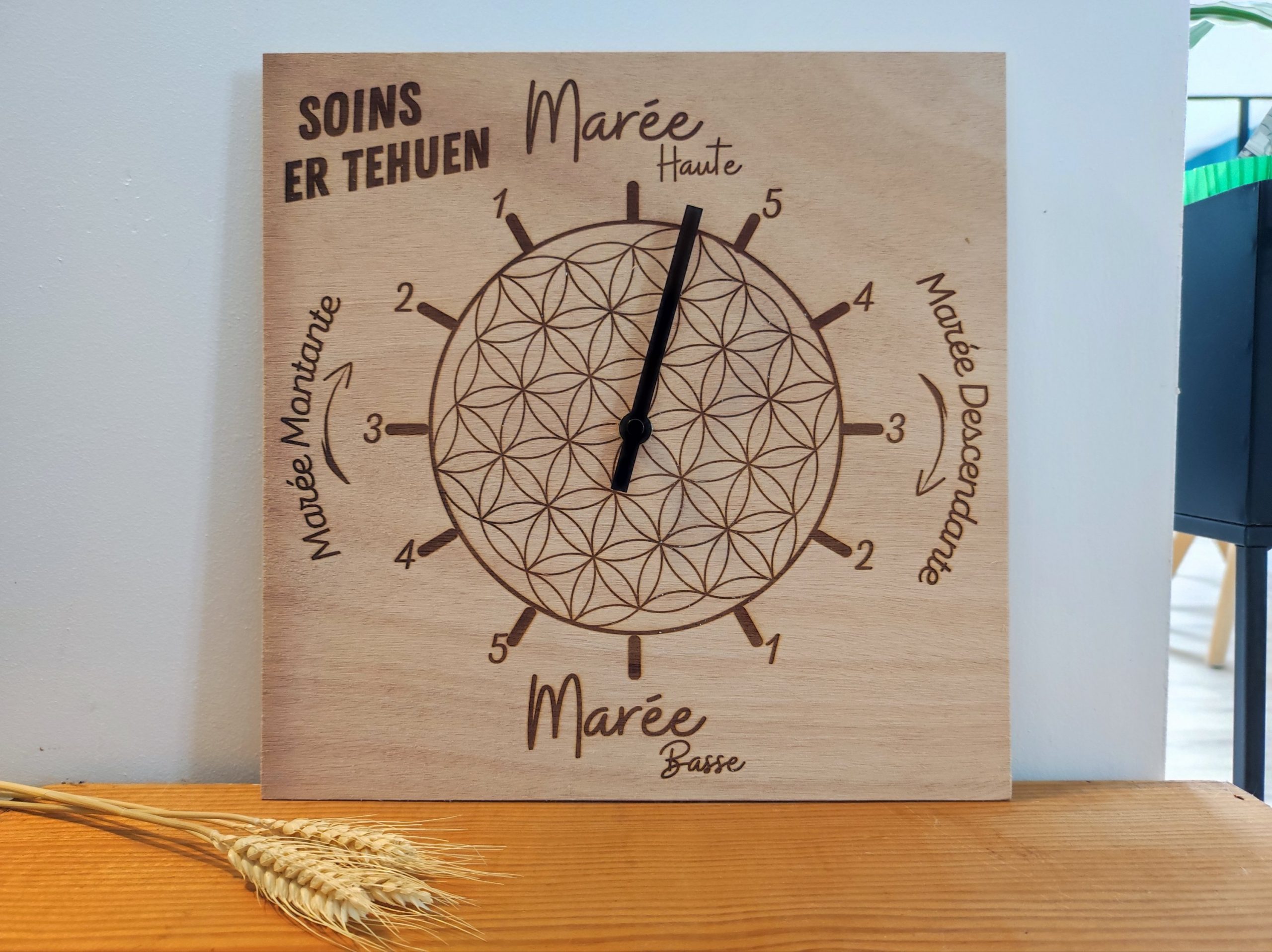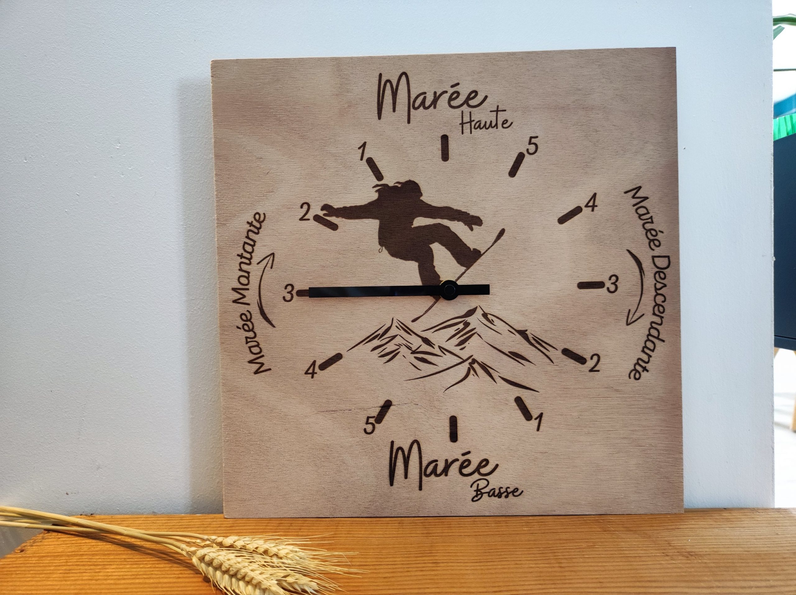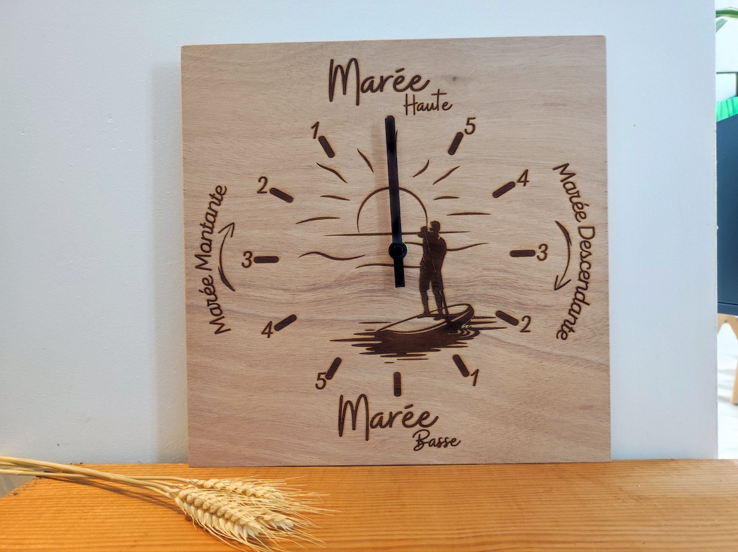 Toujours dans un style intemporelle en bois, vous pouvez personnaliser le motif de votre horloge